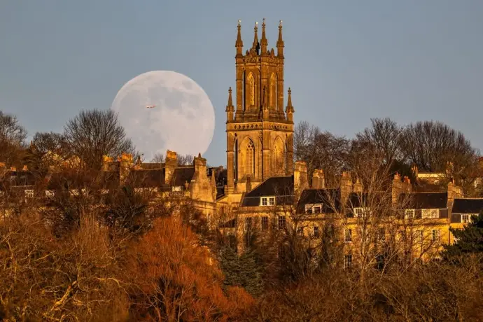 January's wolf moon spectacularly hovered behind St Stephen's! Appropriately this phenomenon is about transformation, and strength forged in darkness before renewal arrives. So how very apt for the Beacon of Lansdown!