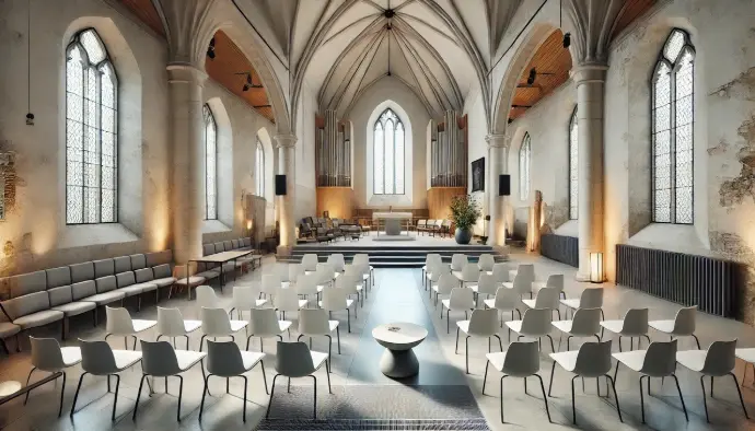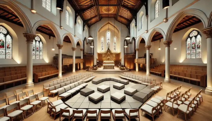 Reconfigure the main church by removing pews to create a flexible worship, performance & community event space